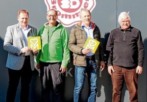 Bei der Spendenübergabe (von links): Christoph Schieder (Dekan), Harald Rauh (JR Service GmbH & Co. KG), Christian Brommler (Bäckerei Brommler) und Eberhard Westhauser (Mewaiki). |