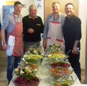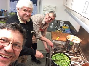 Männer kochen für MeWaiKi war so eine Idee, die nach längerem Überlegen vor kurzem Wirklichkeit wurde. Über 80 Erwachsene und viele Kinder genossen in der OASE ein 3-Gänge-Menü in vollen Zügen. Hans Schrott, unser Meisterkoch und seine 3 Helfer, Andreas, Anton und Eberhard legten sich gewaltig ins Zeug. Sie stellten fest, Kochen ist nichts für Leichtgewichte, da muss man hart arbeiten. Sie werden ab sofort das Kochen ihrer Frauen als Arbeit ganz anders würdigen! Belohnt wurde die Aktion, dass die Vielfalt der Gerichte den Gästen sehr gut schmeckte. Die besten Aktionen sind oft die, wenn alle „auf ihre Kosten kommen“. Wir freuten uns sehr über den stattlichen Betrag von 1.500 € für unsere Witwen und Waisen am Kilimandscharo. Da hat sich doch der Aufwand gelohnt!